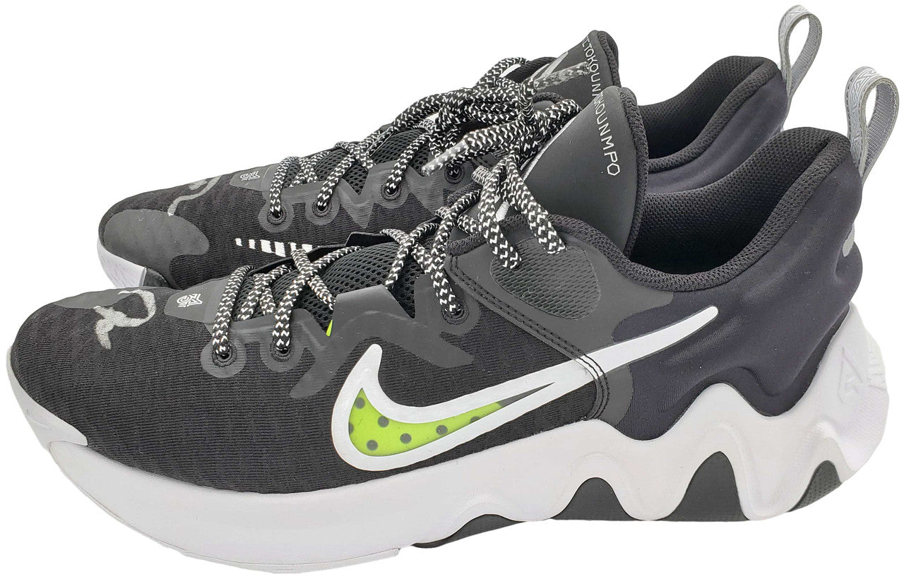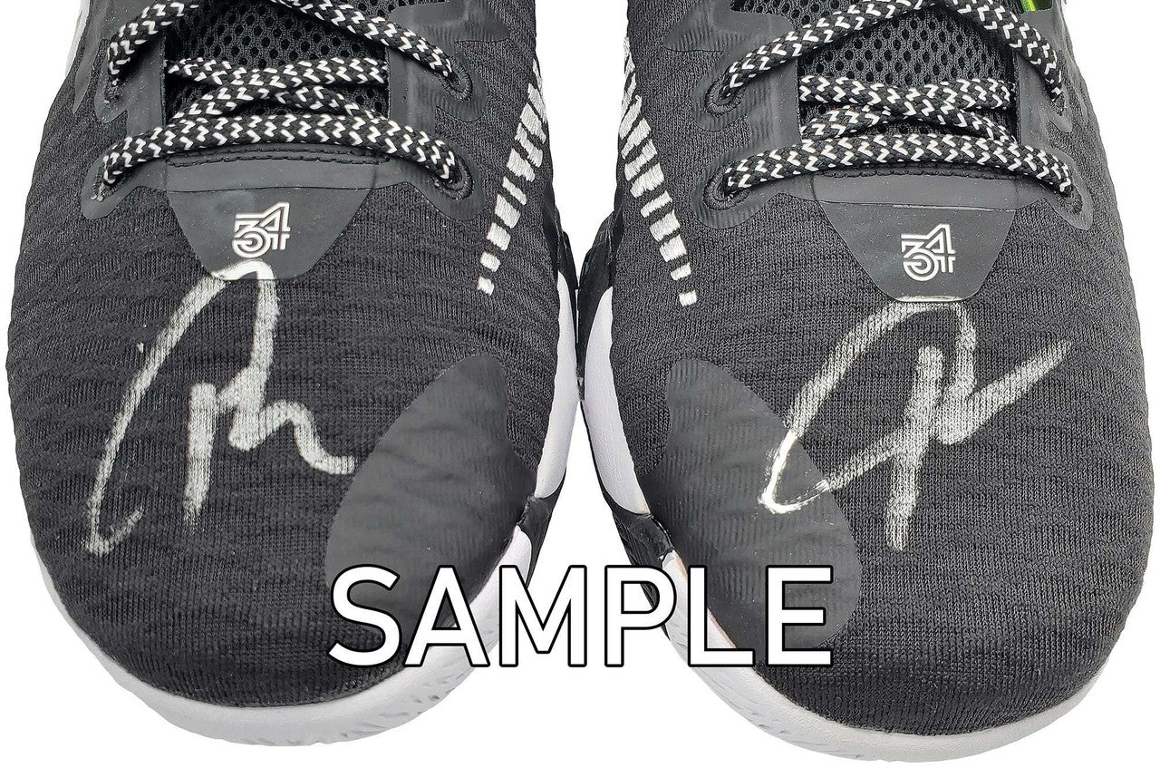 This is a pair of Black Nike Immortality Shoes that has been hand signed by Giannis Antetokounmpo. This pair of shoes also comes with the original shoe box. This item has been certified authentic by Beckett Authentication (BAS) and comes with their tamper-proof QR Code sticker that can be verified on the Beckett-authentication.com. NOTE: This is a stock item and we have multiple quantities of this item. Giannis' signature on these shoes may vary from the original picture on this listing. We have provided a couple sample photos from other pairs of shoes of this style. After purchasing this item, please contact us and we can send you pictures of the signatures that we still have stock of.