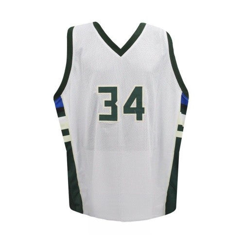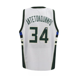 Own a piece of NBA history with this custom stitched Giannis Antetokounmpo Autographed Milwaukee Bucks White Jersey. This jersey has been hand-signed by the Greek Freak himself, making it a prized possession for any basketball fan or collector. The signature has been authenticated by BAS (Beckett Authentication Services), guaranteeing its legitimacy. This custom jersey features the iconic Milwaukee Bucks colors and design, making it a must-have for any Giannis Antetokounmpo fan. Add this rare and exclusive memorabilia to your collection today and show your support for the NBA superstar. Don't miss out on this Giannis Antetokounmpo autographed jersey!