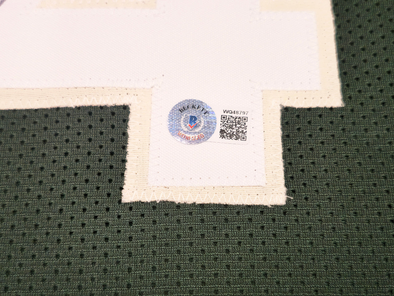 This high-quality Custom Bucks Green Jersey has been hand-signed by Giannis Antetokounmpo in bold silver marker. The autograph is authenticated under the Beckett Authentication Services (BAS) Witness Program, meaning a Beckett representative was physically present to verify the signing. A BAS tamper-proof Witness hologram is included for lifetime verification.