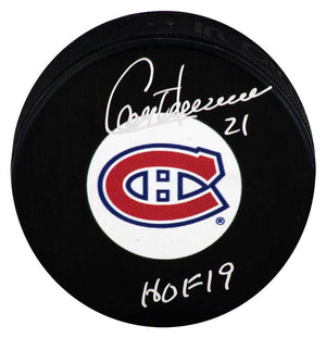 Guy Carbonneau Signed Montreal Canadiens Medium Logo Hockey Puck w/HOF'19