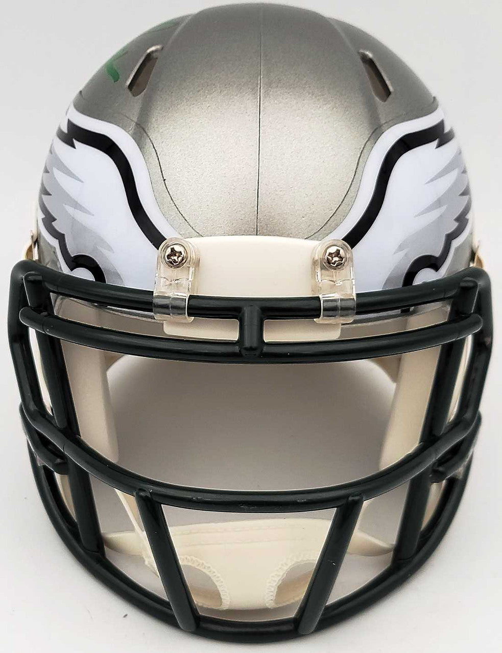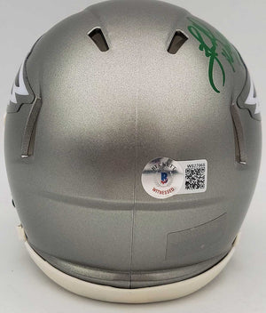 This is a Philadelphia Eagles Flash Silver Speed Mini Helmet that has been hand signed by Herschel Walker. The Flash helmets are very delicate and often have some marks or scratches on them. This item has been certified authentic by Beckett Authentication (BAS) and comes with their tamper-proof QR Code sticker that can be verified on the Beckett-authentication.com.