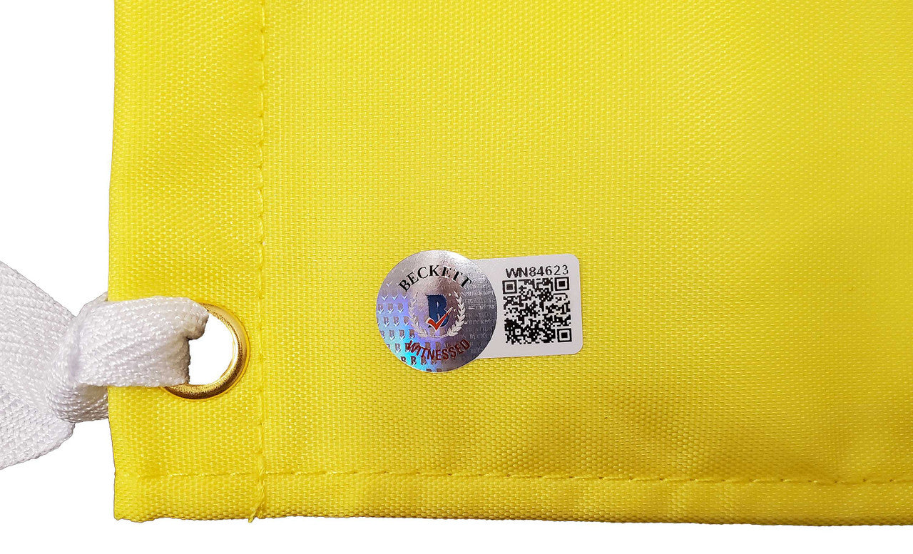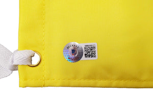 This is a Yellow 2021 Masters Pin Flag that has been hand signed by Hideki Matsuyama. The size of this golf flag is approximately 13.5x17.5.?áThis item has been certified authentic by Beckett Authentication (BAS) and comes with their tamper-proof QR Code sticker that can be verified on the Beckett-authentication.com.