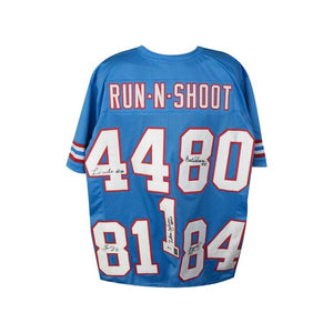 Celebrate one of the most explosive offenses in NFL history with this Houston Oilers Run-N-Shoot Autographed Custom Blue Jersey. This rare multi-signed collectible honors the high-powered Run-N-Shoot offense that defined Houston football in the late 1980s and early 1990s.