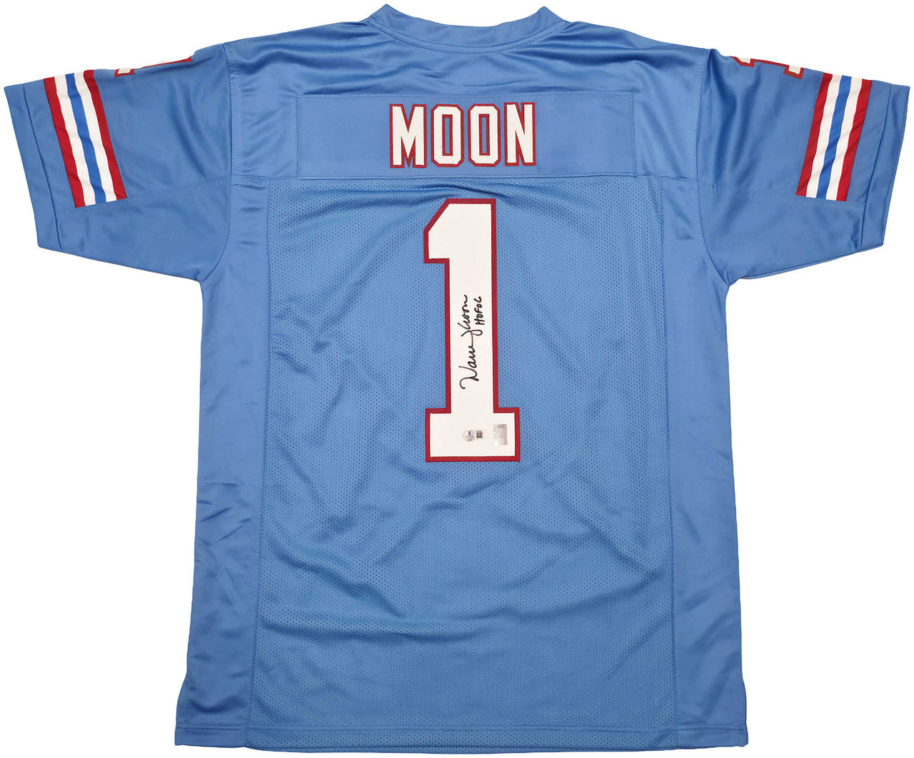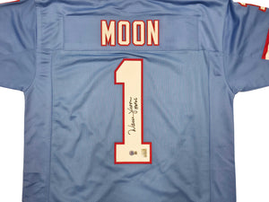 Houston Oilers Warren Moon Autographed Blue Jersey “HOF 06” – Beckett BAS QR