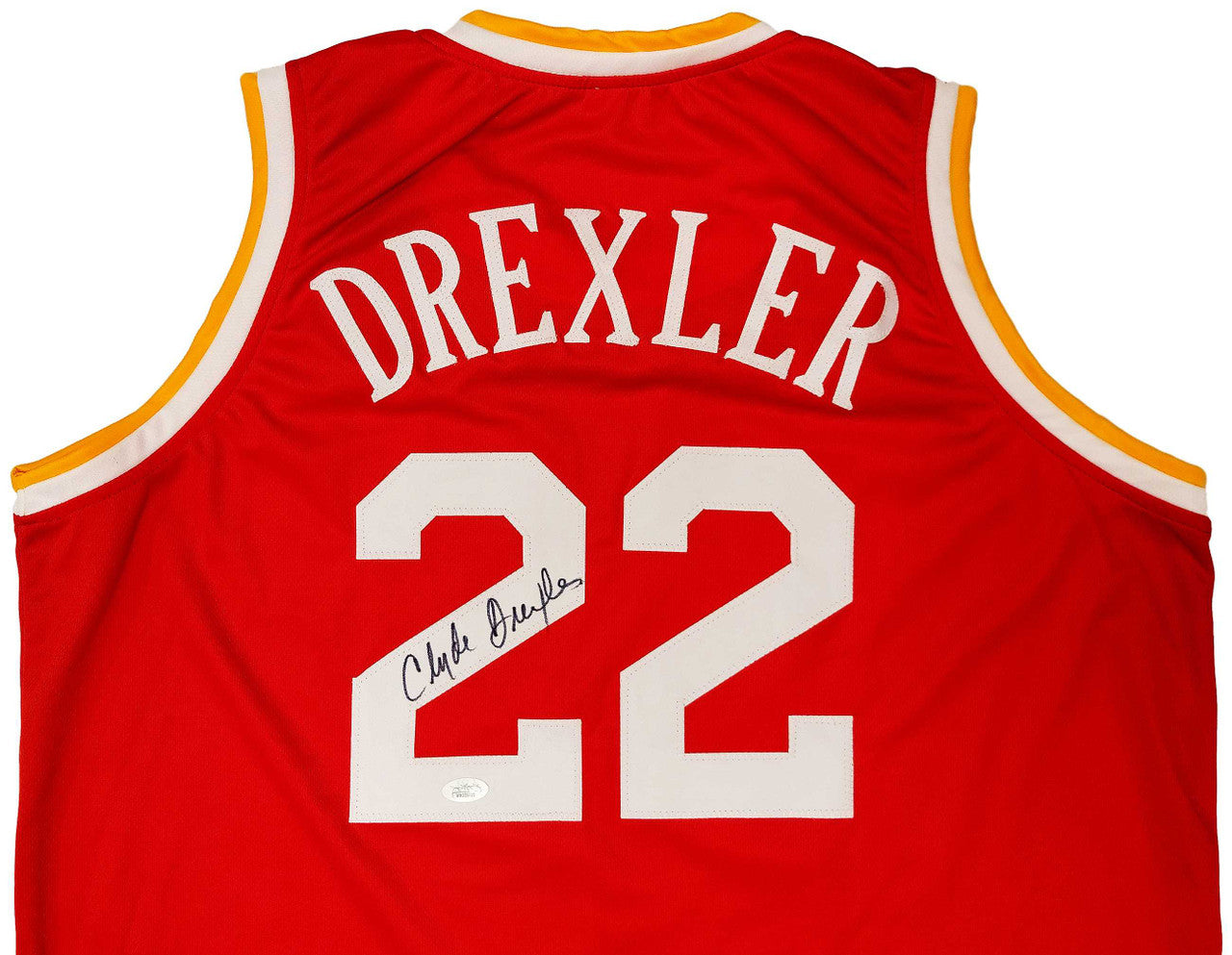 Houston Rockets Clyde Drexler Autographed Red Jersey The Glide JSA Stock #202351