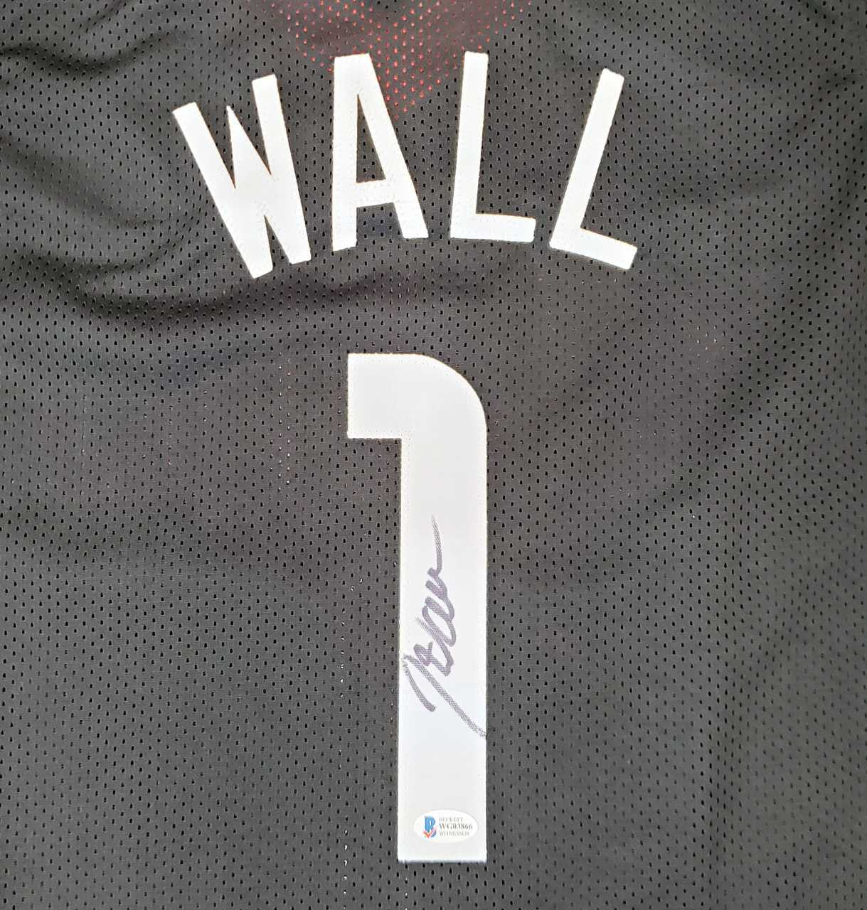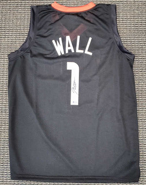 This is a Black Custom Jersey that has been hand signed by John Wall. This is a custom jersey with no name brand. The approximate size is XL. It has nice sewn in name and numbers. This item has been certified authentic by Beckett (BAS) and comes with their tamper-proof sticker and matching certificate of authenticity.