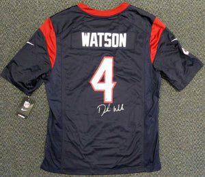 This is a Nike Houston Texans Jersey that has been hand signed by Deshaun Watson. This one is size L. This item has been certified authentic by Beckett (BAS) and comes with their tamper-proof sticker and matching certificate of authenticity.