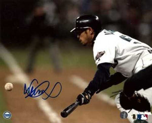 This is an 8x10 Photo that has been hand signed by Ichiro Suzuki. This is from his 1st career hit. This item has the official tamper-proof Ichiro Suzuki hologram and matching certificate of authenticity.