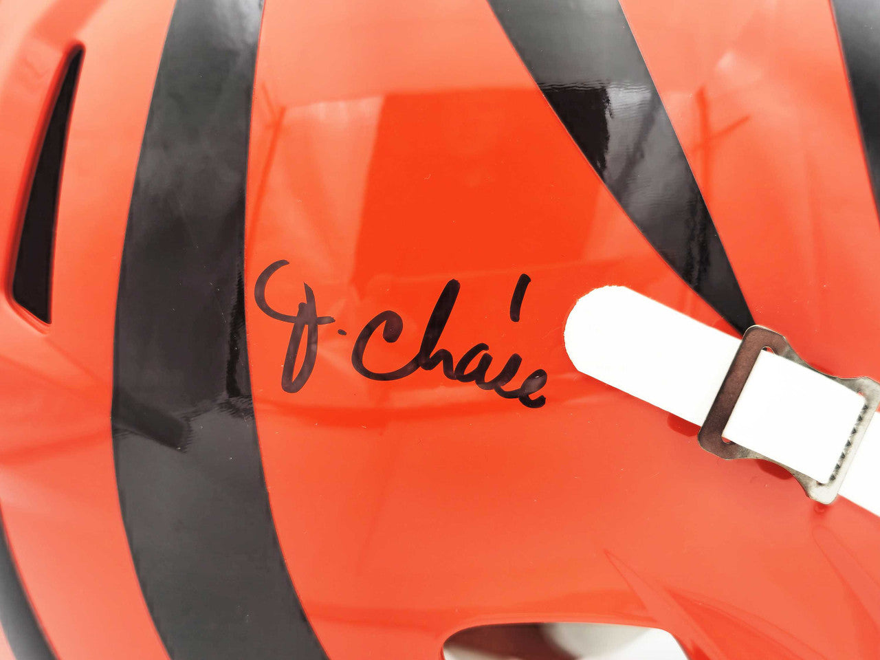 Ja’Marr Chase Autographed Cincinnati Bengals Orange Full Size Speed Replica Helmet – Beckett BAS Witness