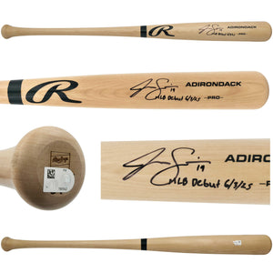 Celebrate the rise of one of baseball’s most electrifying young talents with this Jac Caglianone Autographed Blonde Rawlings Adirondack Pro Baseball Bat, featuring his special inscription “MLB Debut 6/3/25” commemorating his first Major League appearance with the Kansas City Royals.