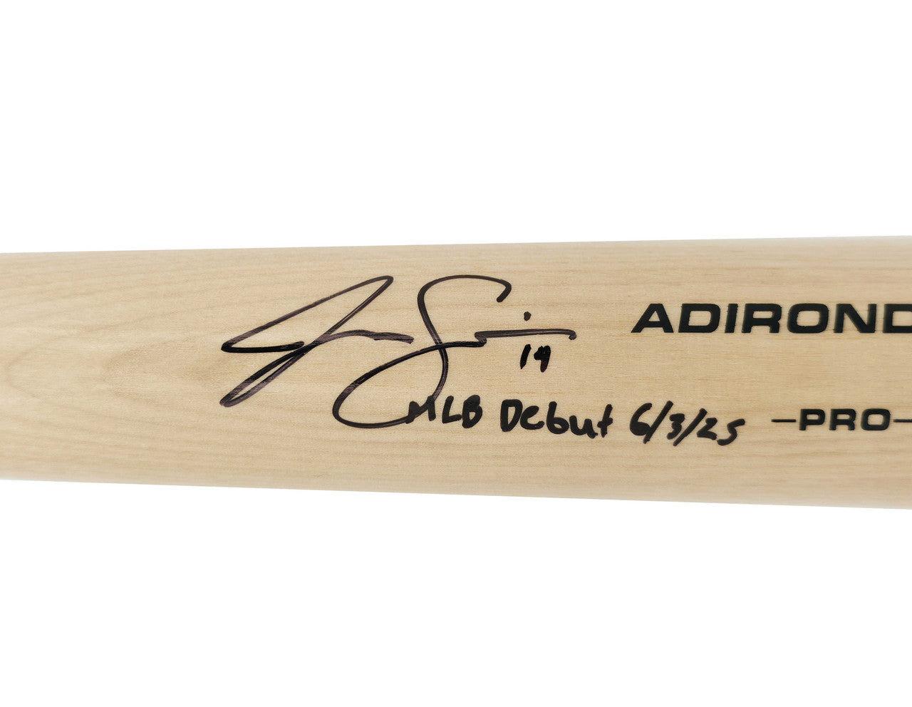 The clean blonde finish and pro-grade maple construction make this bat a standout display piece for collectors, Royals fans, and investors in rising MLB stars. The debut-date inscription adds tremendous long-term significance and rarity.