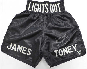 James Lights Out Toney Autographed Boxing Trunks Beckett BAS QR #BS30363