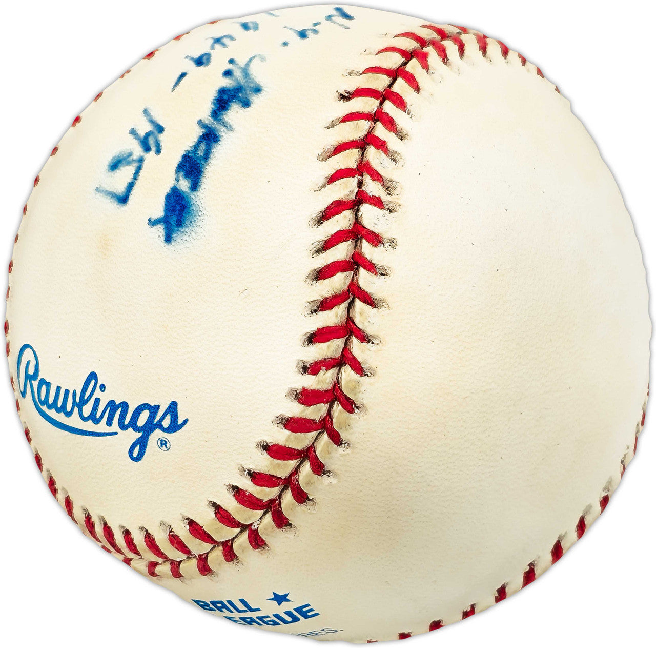 This is an Official American League Baseball that has been hand signed by Jerry Coleman. This item was inscribed "Yankees 1949-57." There is toning in the item as shown. This item is guaranteed to pass any third party authentication company including Beckett, PSA/DNA, & JSA authentication.