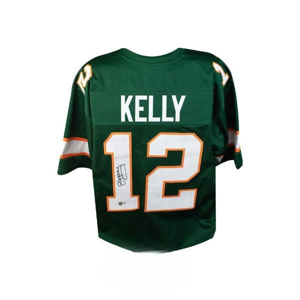 Jim Kelly Autographed Miami Hurricanes Custom Green Football Jersey – Beckett BAS Certified