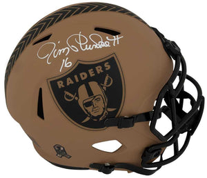 Own a premium helmet with this Jim Plunkett Signed Raiders Salute to Service 2023 Riddell Full Size Speed Replica Helmet- Schwartz Authenticated. Authenticated by Schwartz Sports for guaranteed legitimacy.