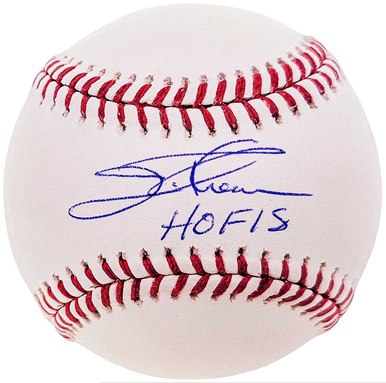 Celebrate the Hall of Fame career of one of baseball’s most iconic power hitters with this Jim Thome Autographed Official MLB Baseball, complete with the inscription “HOF 18”. A Cleveland Indians legend and member of the 600 Home Run Club, Thome’s signed memorabilia remains highly sought after by MLB collectors.