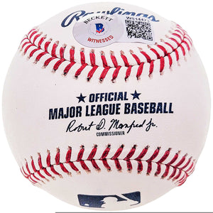 This ball is authenticated under the Beckett BAS Witness Program, meaning the autograph was witnessed in person by an official Beckett representative. The tamper-proof hologram ensures lifetime verification of the signature and inscription.