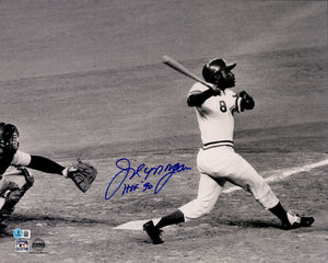 This is a 16x20 Photo that has been hand signed by Joe Morgan. This item was inscribed "HOF 90." There are white lines in the photo as shown. This item has been certified authentic by Beckett Authentication (BAS) and comes with their tamper-proof QR Code hologram.