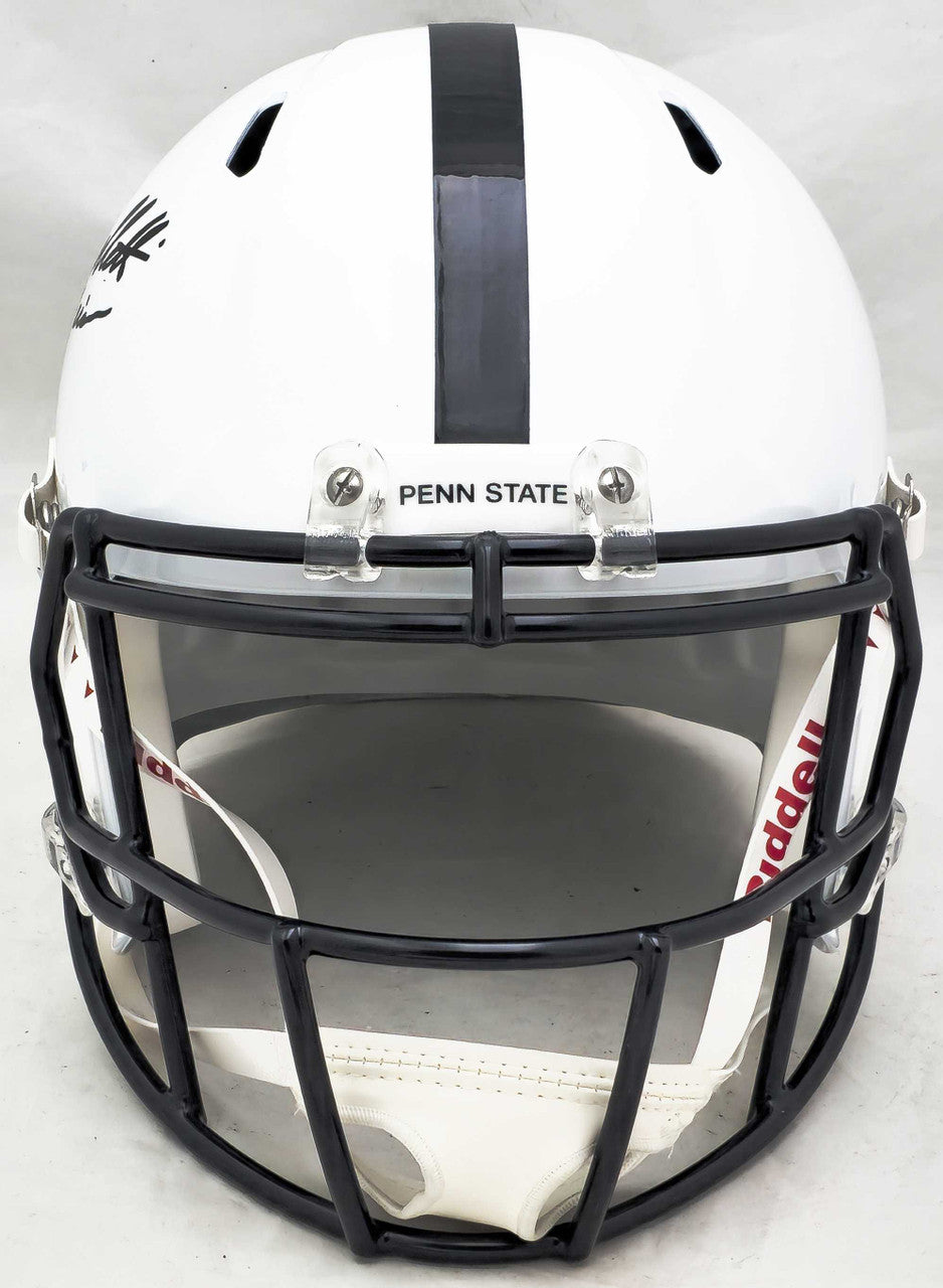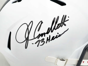Celebrate one of the greatest players in Penn State football history with this John Cappelletti Autographed Penn State Nittany Lions White Full Size Speed Replica Helmet featuring the special inscription “73 Heis.” Cappelletti remains the only Penn State player ever to win the Heisman Trophy, earning the honor in 1973 after one of the most memorable seasons in college football.