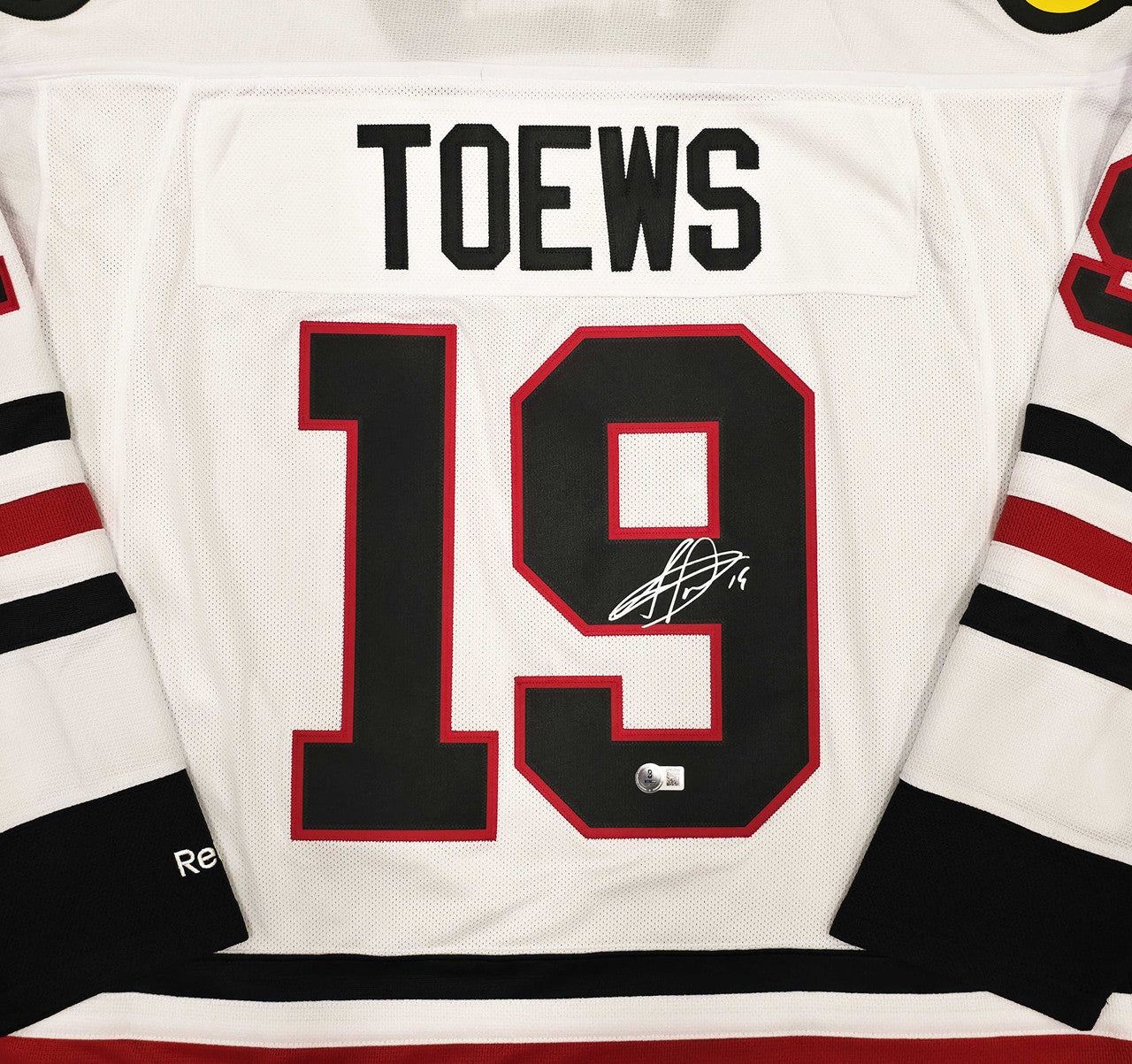 This official Reebok Chicago Blackhawks Jersey has been hand-signed by Jonathan Toews. The autograph is certified authentic by Beckett Authentication Services (BAS) Witness Program and comes with a tamper-proof hologram for lifetime verification.