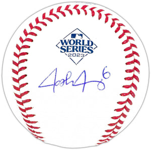 Josh Jung Autographed Official 2023 World Series Logo MLB Baseball Texas Rangers Beckett BAS Witness
