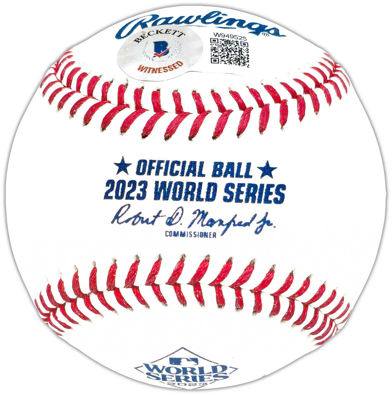 This is an Official 2023 World Series Logo MLB Baseball that has been hand signed by Josh Jung. This item has been witnessed and certified authentic by Beckett Authentication (BAS) and comes with their tamper-proof witness sticker.
