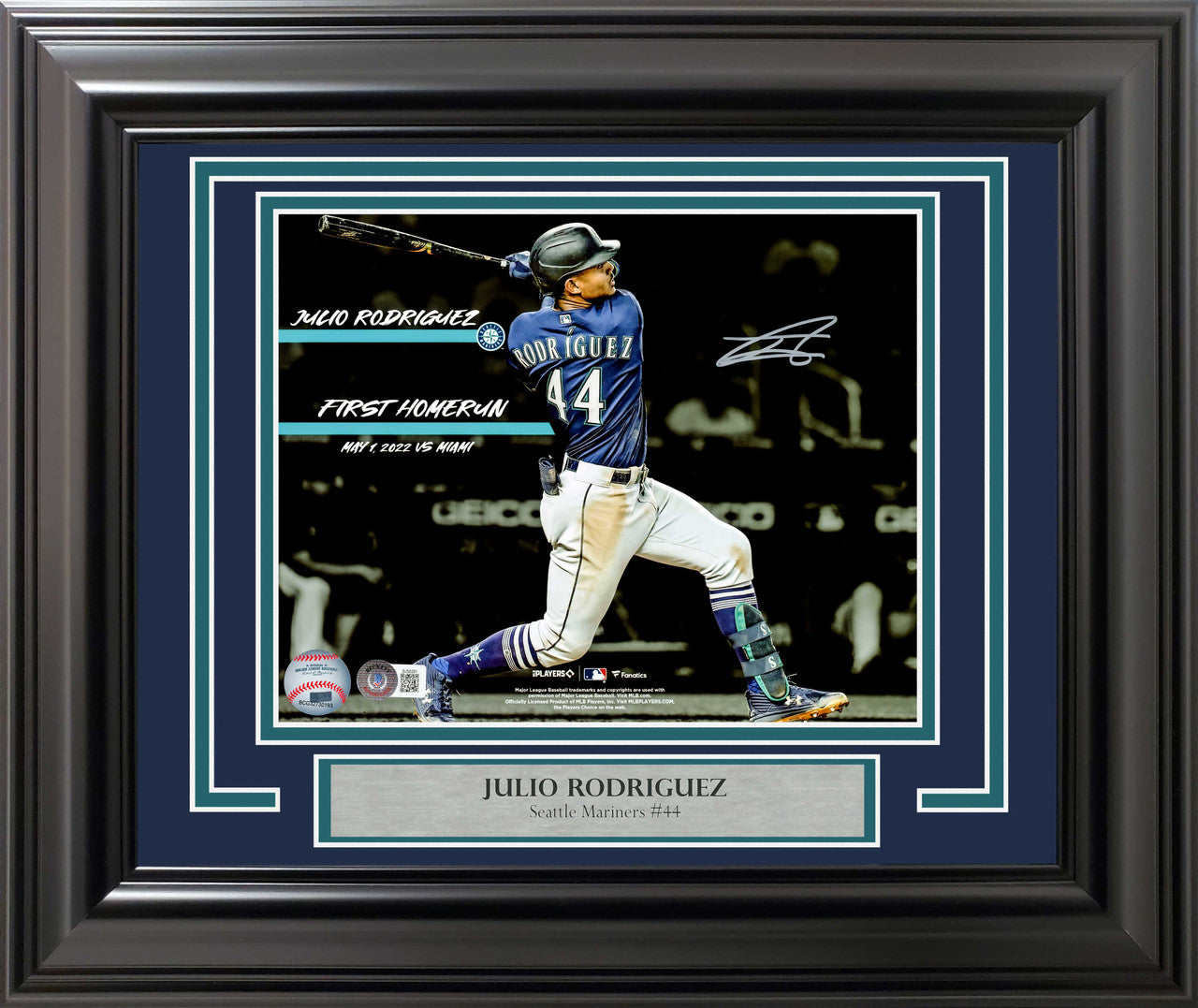 Julio Rodriguez Framed 8x10 Autographed Photo Seattle Mariners Beckett Authentication Services COA