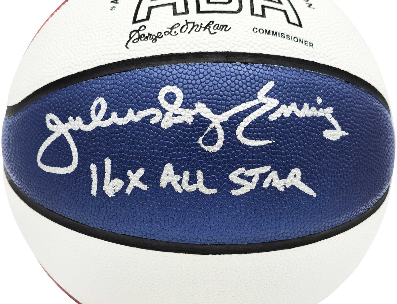 This official ABA logo basketball has been hand signed by Julius “Dr. J” Erving, the transcendent superstar who bridged the ABA and NBA eras and became the face of the ABA. Dr. J added the prestigious inscription “16x All-Star”, highlighting his unmatched longevity, dominance, and legendary career across both leagues.