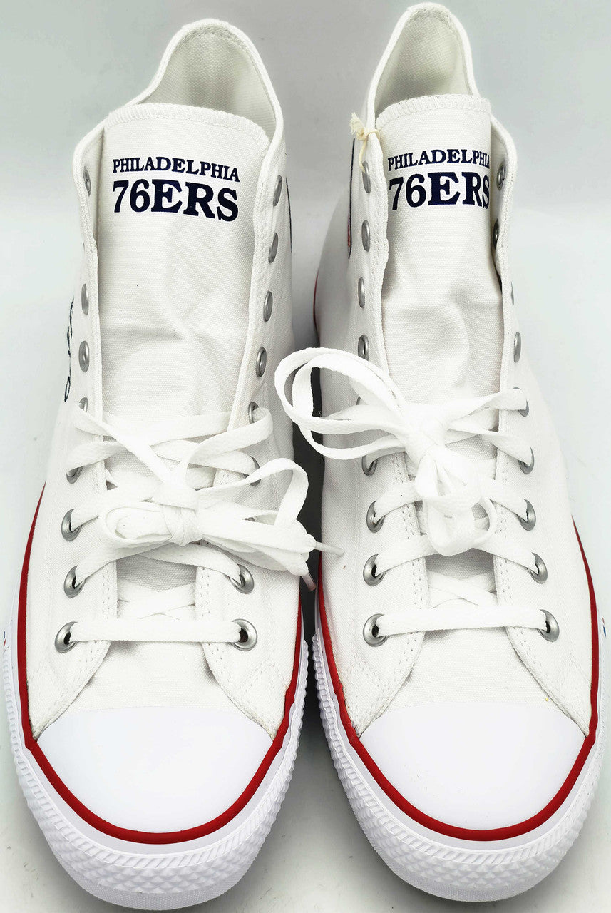 - White Converse All Star shoes with Philadelphia 76ers logo