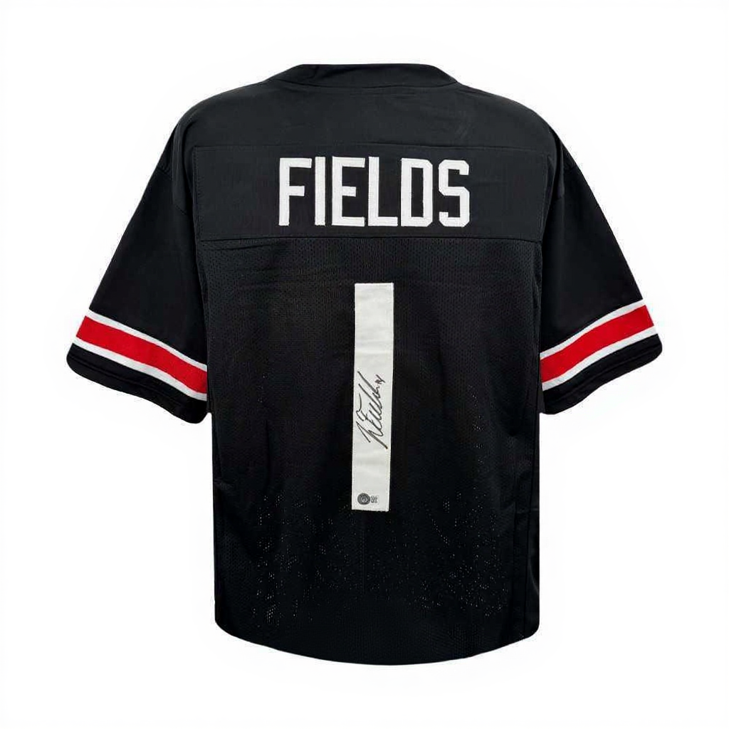 Justin Fields Autographed Ohio State Buckeyes Black Jersey – Beckett BAS