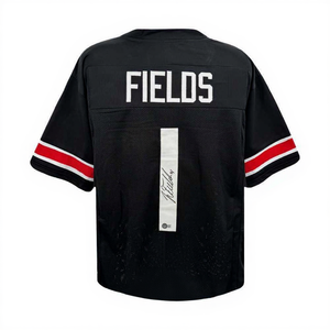 Add an elite Buckeyes collectible to your memorabilia wall with this Justin Fields Autographed Custom Black Ohio State Jersey. Fields, one of the most dominant quarterbacks in Ohio State history, led the Buckeyes to multiple College Football Playoff appearances and remains a fan favorite nationwide.