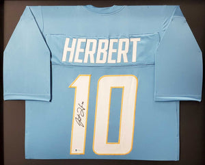 Justin Herbert Signed Los Angeles Chargers Framed Powder Blue Jersey – BAS COA
