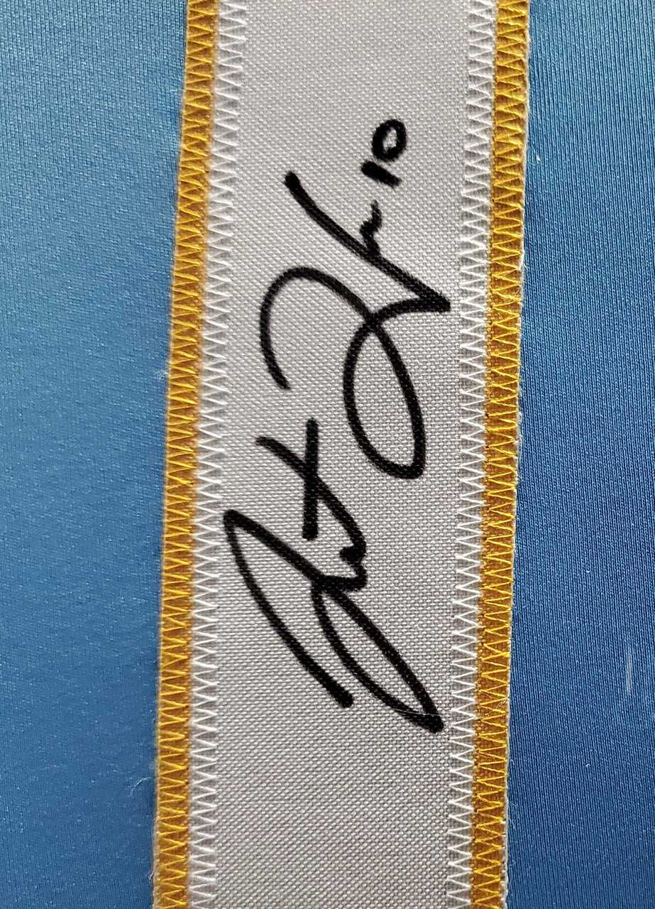 This eye-catching Custom Powder Blue Chargers Jersey has been hand-signed by Justin Herbert. The autograph is certified authentic by Beckett Authentication Services (BAS), one of the most trusted names in the memorabilia industry. A BAS tamper-proof hologram accompanies the jersey for lifetime verification.