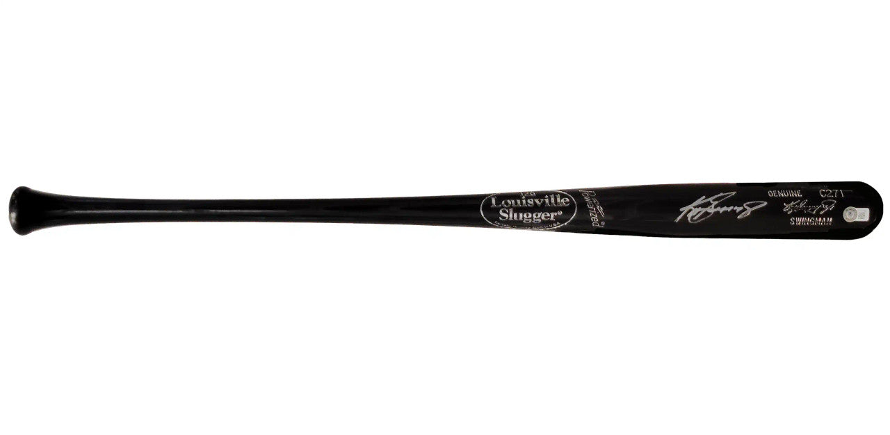Celebrate one of baseball’s greatest players with this Ken Griffey Jr. autographed black Louisville Slugger Swingman bat. Featuring Griffey’s personal “Swingman” branding, this stunning collectible pays tribute to his legendary career with the Seattle Mariners and his signature smooth, powerful swing.