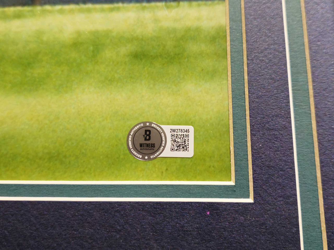 The Ken Griffey Jr. Autographed Framed 16x20 Photo captures one of the iconic moments in Seattle Mariners history - the famous wall catch by the baseball legend. This stunning photo is personally hand-signed by Ken Griffey Jr. himself, ensuring its authenticity. Professionally framed and accompanied by a Beckett BAS Witness certificate, this piece is a must-have for any fan of Griffey or the Mariners. Perfect for display in a home or office, this collectible item showcases the skill and talent of Ken Griffey Jr. Don't miss out on this unique opportunity to own a piece of baseball history with this Ken Griffey Jr Autographed Photo.