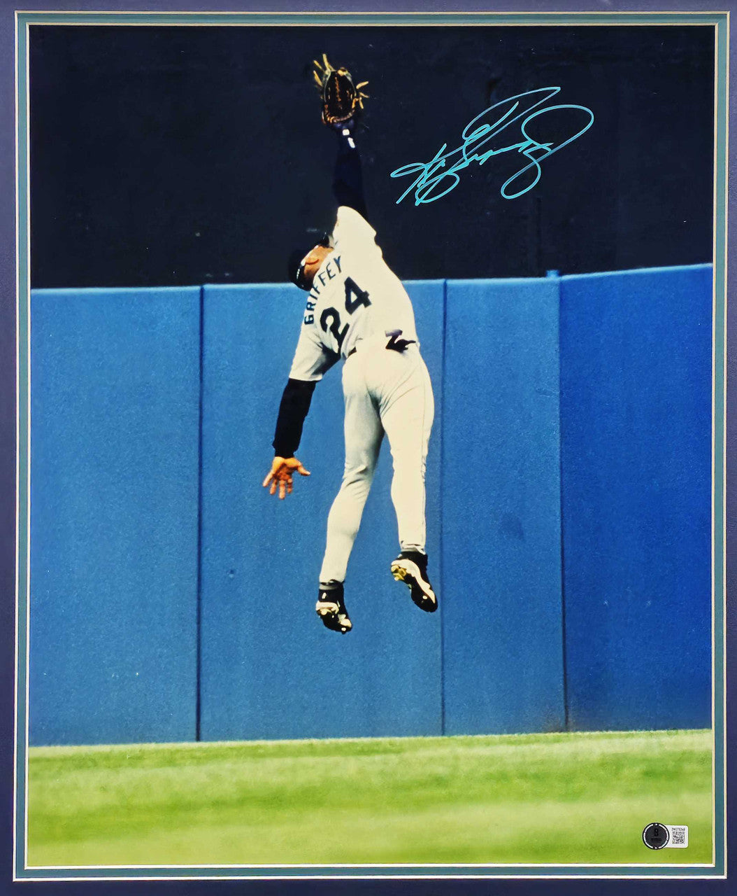 Ken Griffey Jr. Autographed Framed 16x20 Photo Seattle Mariners Wall Catch Beckett BAS Witness