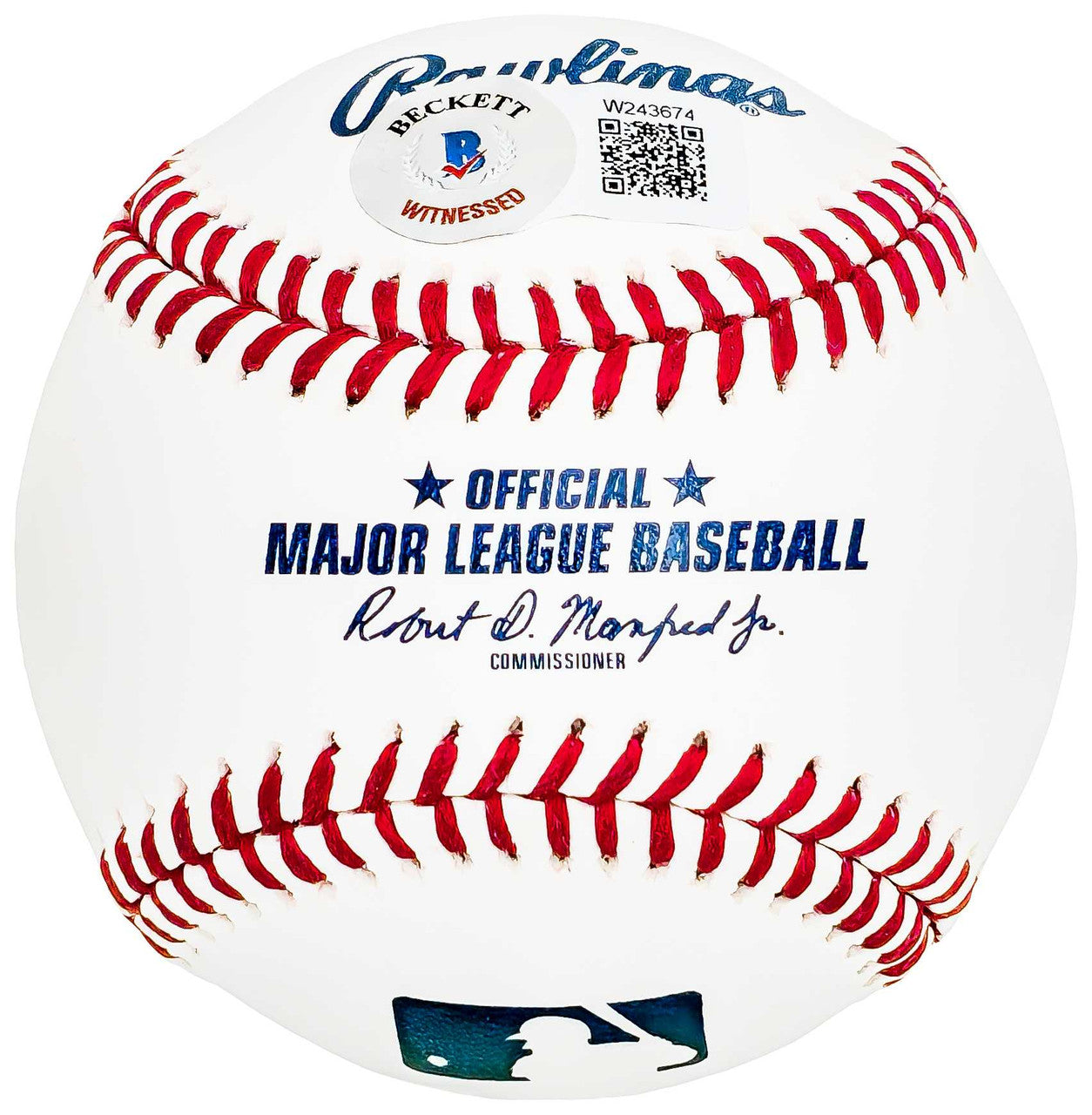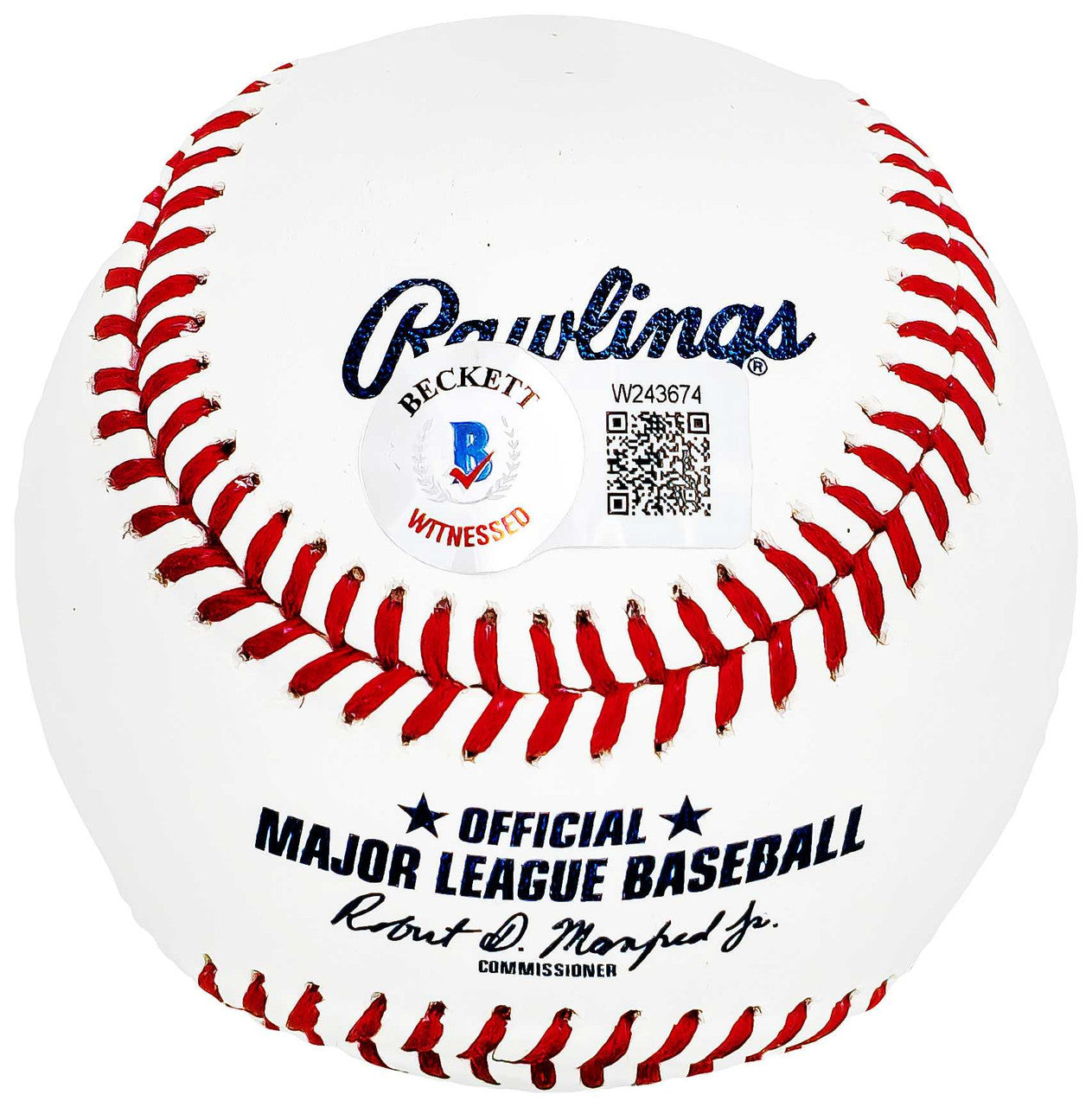 This is an Official MLB Baseball that has been hand signed by Ken Griffey Jr. This item was inscribed "MLB Debut 4-3-89." This item has been witnessed and certified authentic by Beckett Authentication (BAS) and comes with their tamper-proof witness sticker. Beckett Authentication has recently changed their physical certificate card policy where they no longer match their tamper-proof sticker with a physical certificate. A certificate can be printed on Beckett's website for the matching authentication number.