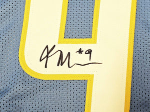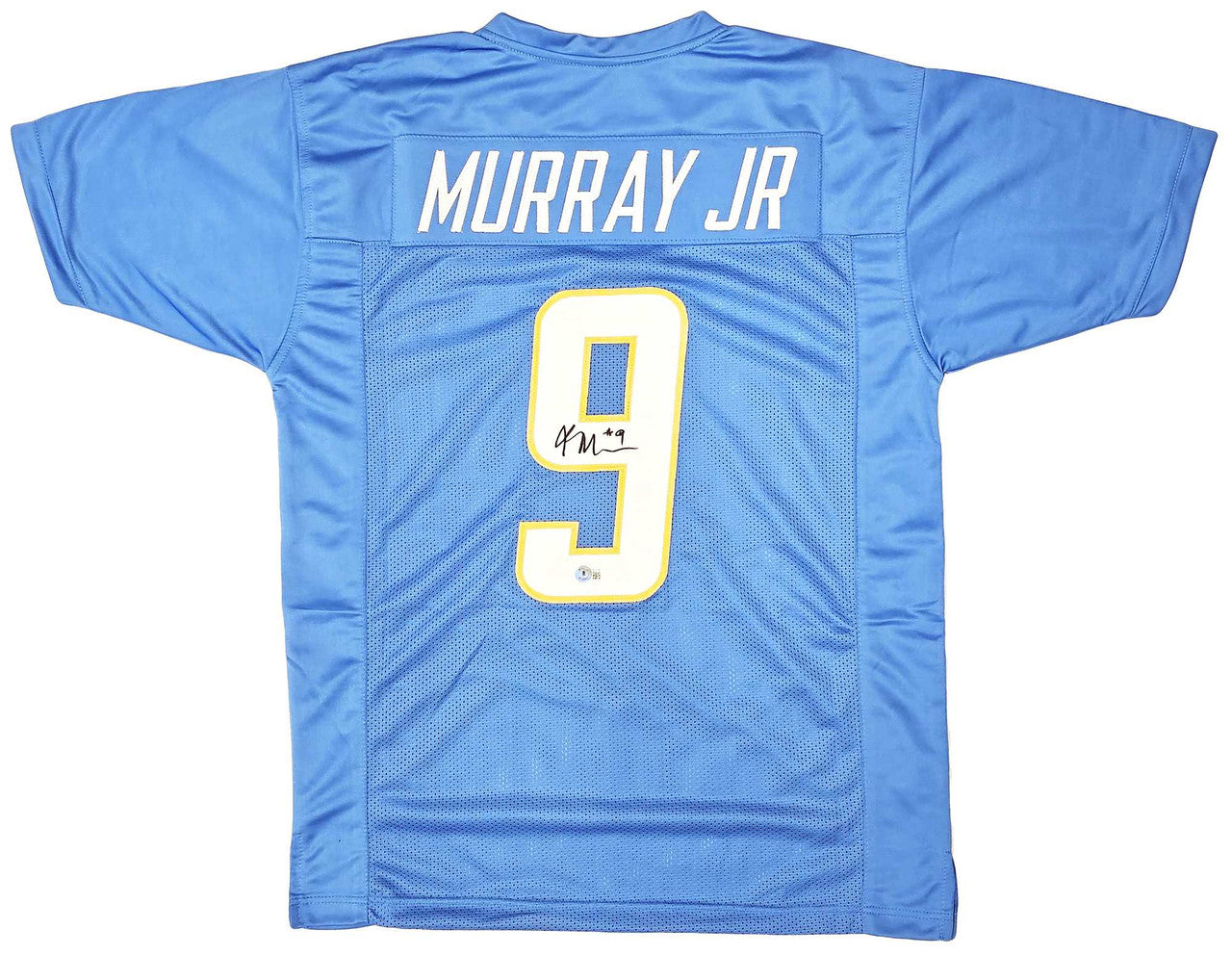 This custom powder blue Los Angeles Chargers football jersey has been hand-signed by Kenneth Murray Jr.. It features stitched name and numbers and is approximately size XL. The autograph has been witnessed and authenticated by Beckett Authentication Services (BAS) and includes their tamper-proof Beckett Witness hologram for lifetime authenticity assurance.