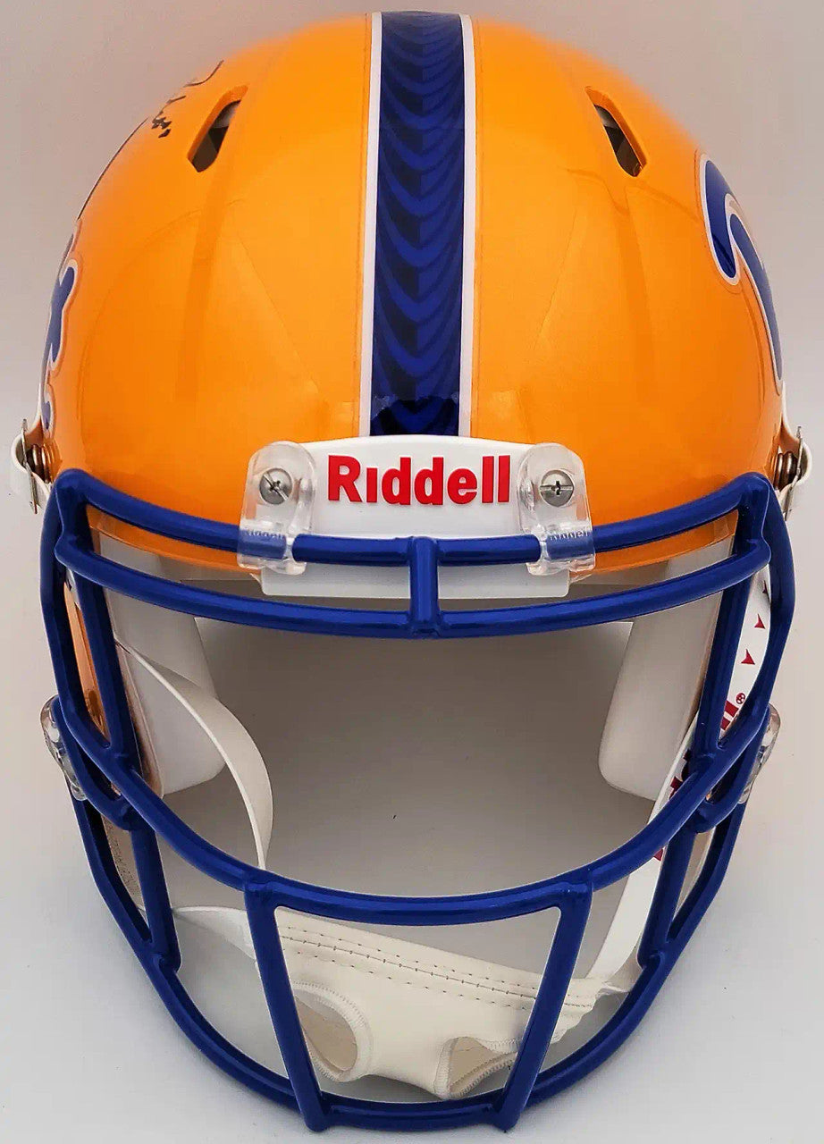 Add an elite Pitt Panthers collectible to your memorabilia collection with this Kenny Pickett Autographed Pittsburgh Panthers Gold Full Size Authentic Speed Helmet. Pickett is one of the most accomplished quarterbacks in Pitt history, cementing his legacy with record-setting performances and leadership that brought national attention back to the Panthers program.