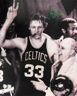 Larry Bird Signed Boston Celtics 16x20 Cigar Celebration Photo with Red Auerbach – Larry Bird Authenticated