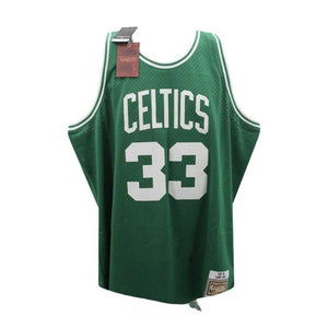 Add a piece of basketball history to your collection with this Larry Bird Autographed Boston Celtics Mitchell & Ness Basketball Jersey (Size XL). Bird, a 3-time NBA Champion, 3-time MVP, and 12-time All-Star, is one of the most legendary players in Celtics and NBA history. This premium Mitchell & Ness Swingman jersey has been hand-signed by Larry Bird and is authenticated by Professional Sports Authenticator (PSA), complete with a tamper-proof hologram and Certificate of Authenticity.