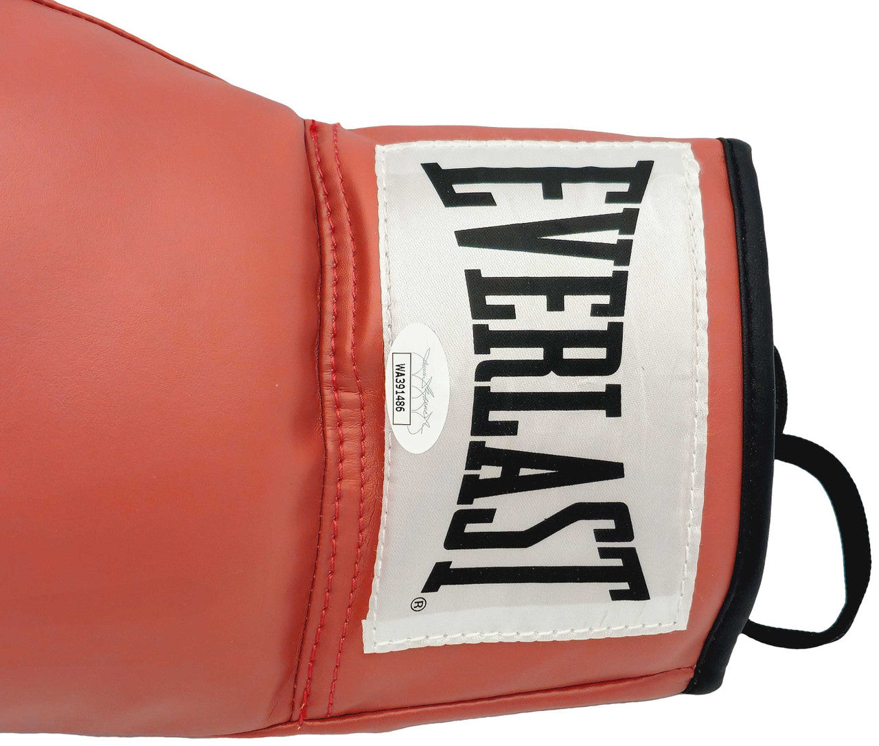 This is a Red Everlast Boxing Glove that has been hand signed by Larry Holmes. This item has been certified authentic by JSA and comes with their tamper-proof sticker and matching certificate of authenticity.
