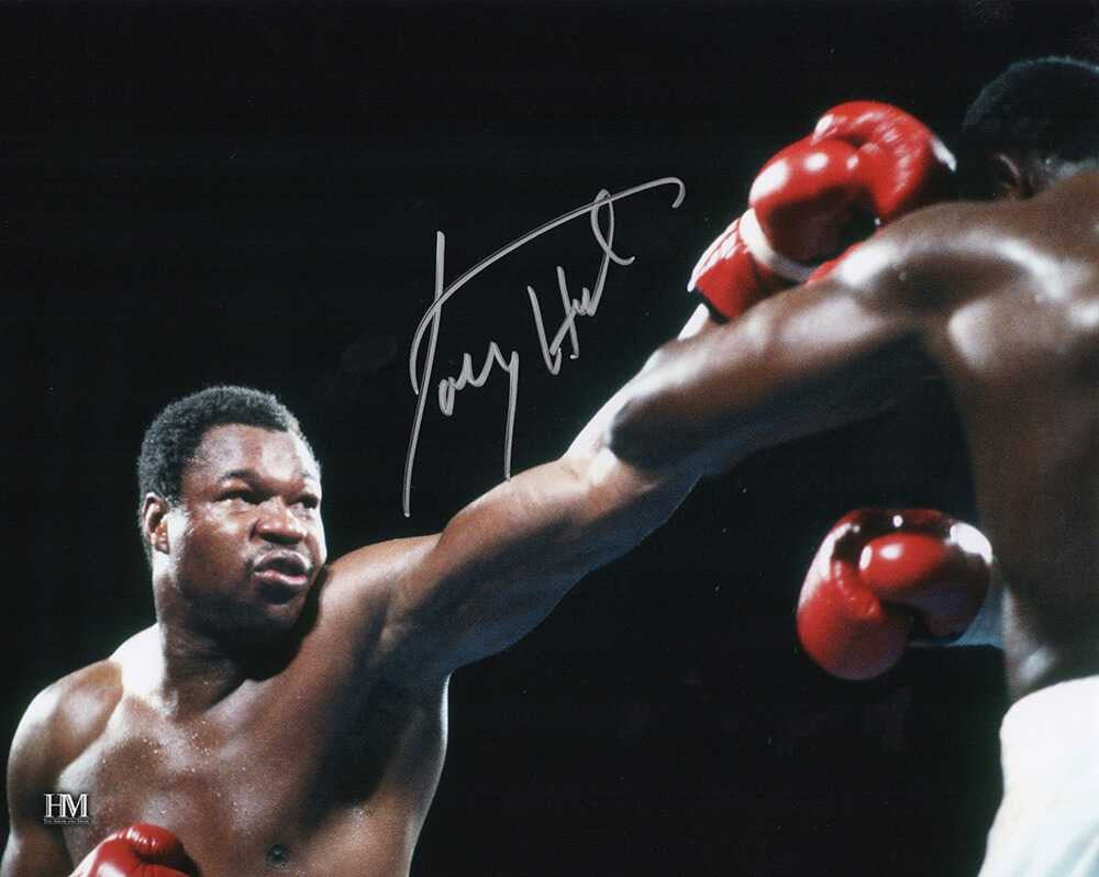 Larry Holmes Signed Boxing Action 8x10 Photo - Schwartz Authenticated