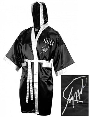 Larry Holmes signed Title black boxing robe. Item comes with a Schwartz Sports Memorabilia tamper-proof numbered hologram and Certificate of Authenticity which can be verified online.