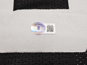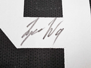 This is a Black Jersey that has been hand signed by Tyree Wilson. This is a custom jersey with no name brand. The approximate size is XL. It has nice sewn in name and numbers. This item has been witnessed and certified authentic by Beckett Authentication (BAS) and comes with their tamper-proof witness sticker.