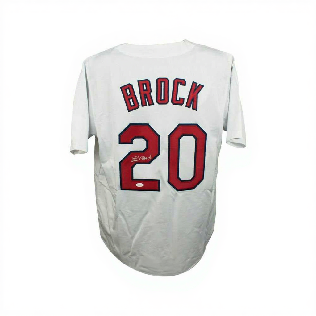 Celebrate the career of one of baseball’s greatest base stealers with this Lou Brock Autographed St. Louis Custom White Baseball Jersey. Featuring Brock’s bold signature and authenticated with a JSA Certificate of Authenticity (COA), this jersey is a classic collectible for Cardinals fans and baseball memorabilia collectors.