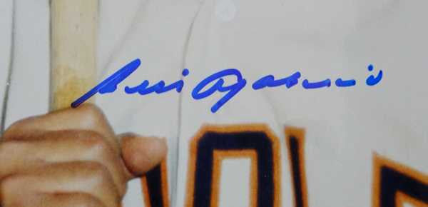 This is a 16x20 photo that has been hand signed by Luis Aparicio. The autographs have been certified authentic by PSA/DNA and comes with their sticker and matching certificate of authenticity. There are minor bends and creases in the photo, but still displays nice.