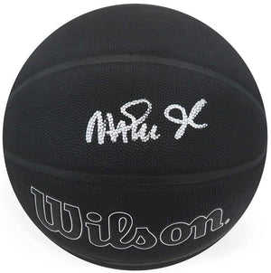 Magic Johnson signed Wilson 75th Anniversary logo black NBA basketball. Item comes with a Schwartz Sports Memorabilia tamper-proof numbered hologram and Certificate of Authenticity which can be verified online.
