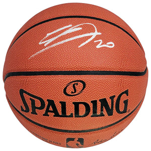 This is an Official Spalding Signature Series Basketball that has been hand signed by Manu Ginobili. This item has been witnessed and certified authentic by Beckett Authentication (BAS) and comes with their tamper-proof witness sticker. Beckett Authentication has recently changed their physical certificate card policy where they no longer match their tamper-proof sticker with a physical certificate. A certificate can be printed on Beckett's website for the matching authentication number.