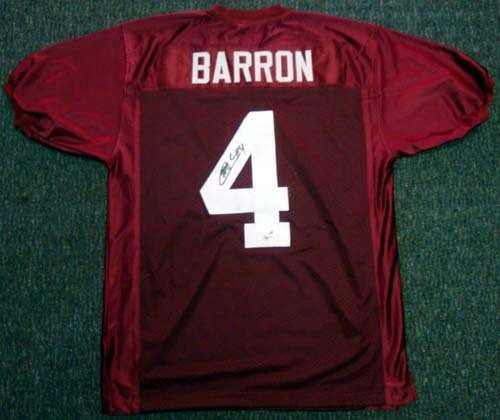 This is a Alabama Crimson Tide Jersey that has been hand signed by Mark Barron. It has been authenticated by PSA/DNA as a rookie signature and comes with their tamper-proof sticker and matching certificate of authenticity. This is a custom jersey with no name brand. It has sewn in name and numbers. Approximate size is XL.
